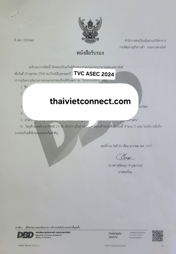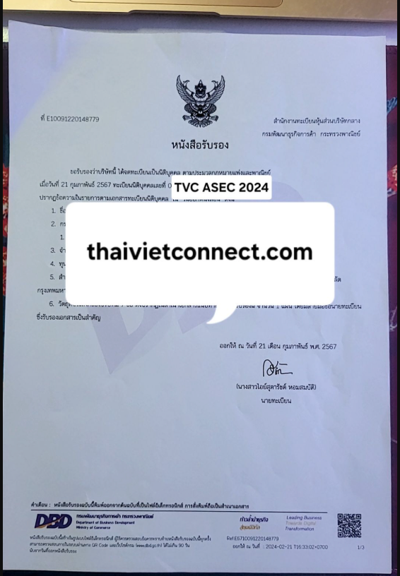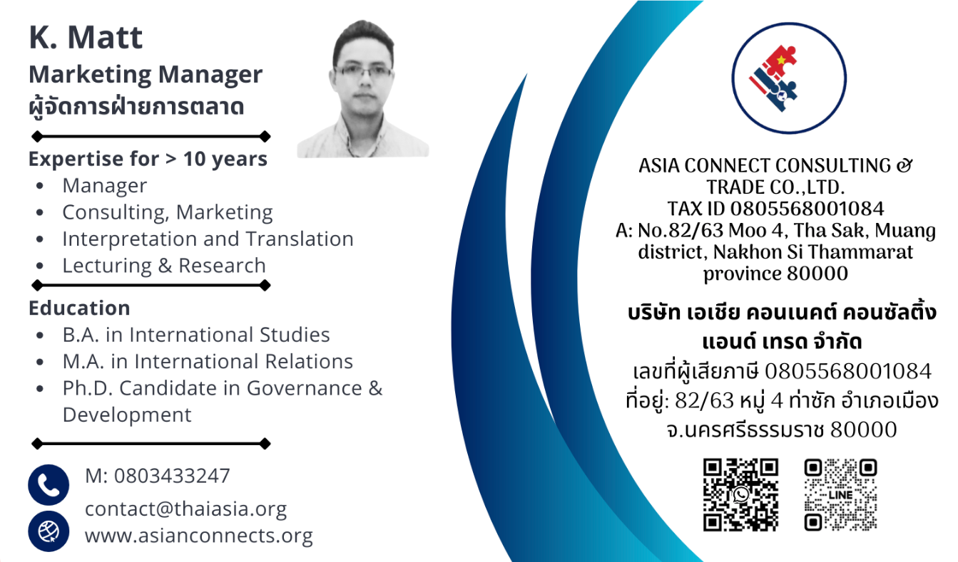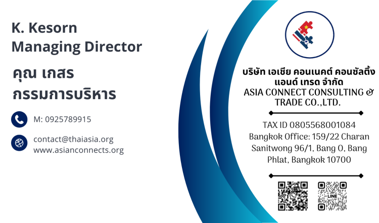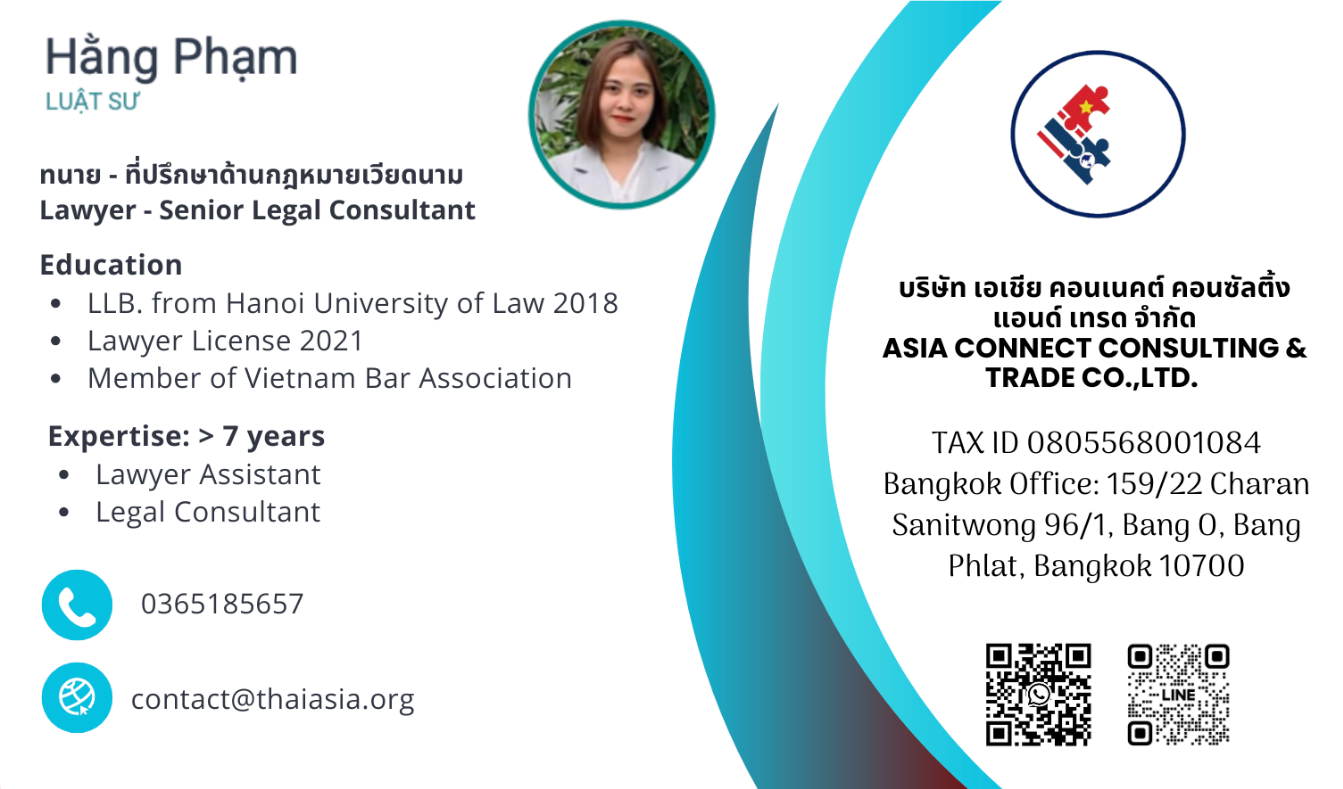 - Clearance of legal and financial issues (formally and informally) relating to business establishment and operation in Thailand and Vietnam.
